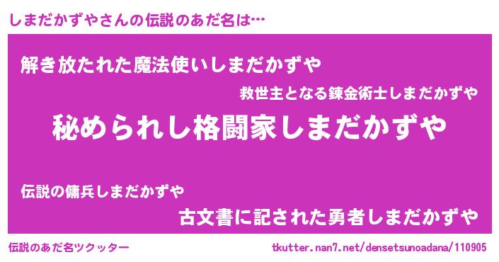 | ファンタジー風あだ名 | 『エターナルシマダカズヤー』 |