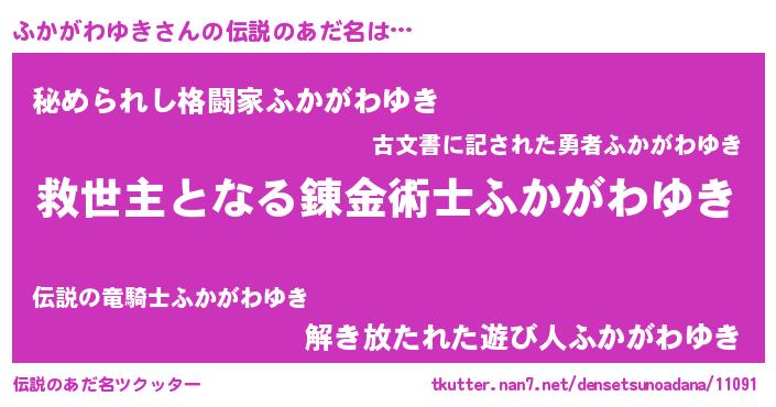 | ヒーロー風カッコイイあだ名 | 『慈愛の使者ふかがわゆき』 |