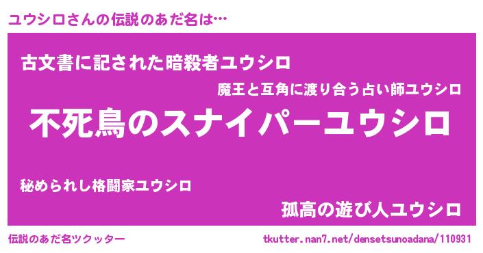 | ヒーロー風カッコイイあだ名 | 『スーパーユウシロ』『ネオユウシロ』 |
