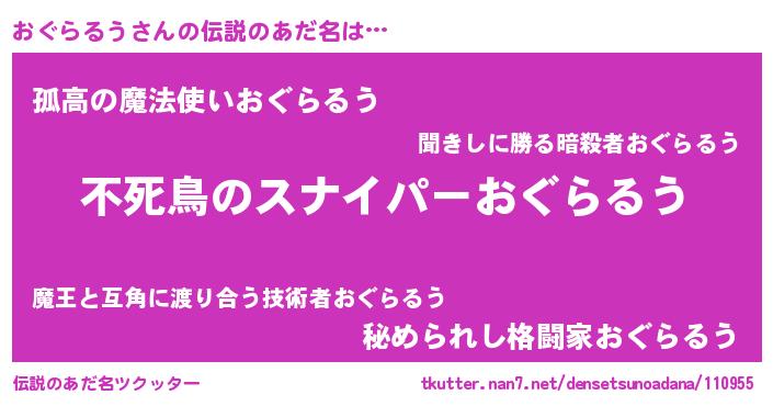 | 胡散臭い通販商品みたいなあだ名 | 『モテモテ間違いなし霊験あらたかなお札…その名も「おぐらるう」』 |