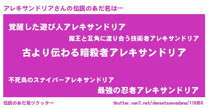 | 意味不明あだ名 | 『永久保存アレキサンドリア』 |