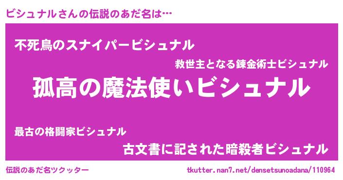 | 女子向けラノベタイトル風あだ名 | 『ビシュナルは平凡を望む』 |