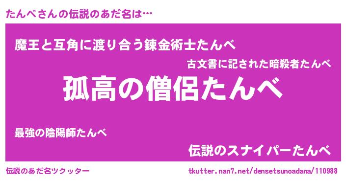 | ヒーロー風カッコイイあだ名 | 『ウルトラ戦士タンベ』『銀牙騎士タン』 |
