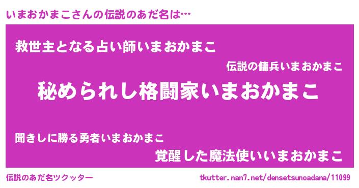 | 意味不明あだ名 | 『自称いまおかまこ』 |
