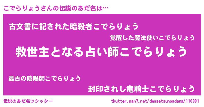 | ヒーロー風カッコイイあだ名 | 『天空の使者こでらりょう』 |