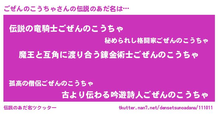 | 男性向けラノベタイトル風あだ名 | 『転生したらごぜんのこうちゃだった件』 |