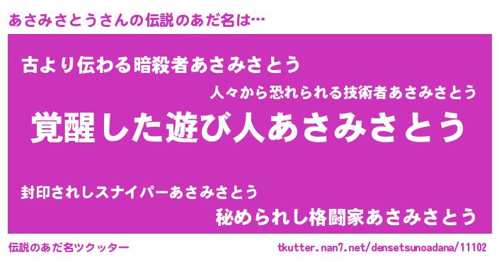 | 意味不明あだ名 | 『自称あさみさとう』 |