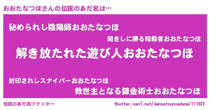 | 女子向けラノベタイトル風あだ名 | 『おおたなつほの卵を拾いまして』 |