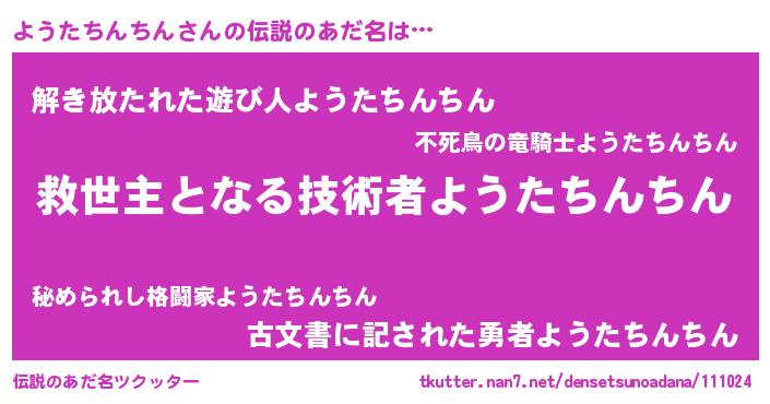 | ヒーロー風カッコイイあだ名 | 『慈愛の使者ようたちんちん』 |