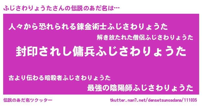 | 男性向けラノベタイトル風あだ名 | 『ふじさわりょうた~年齢イコール彼女いない歴の魔法使い~』 |