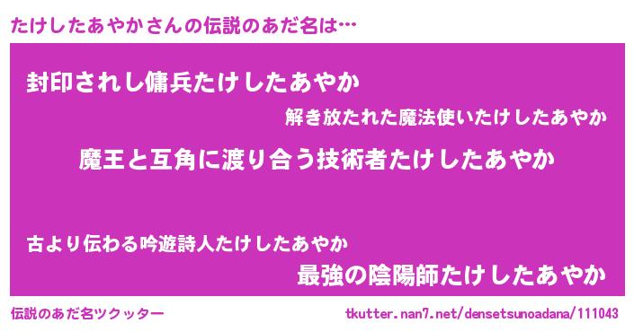| ヒーロー風カッコイイあだ名 | 『愛の使者たけしたあやか』 |