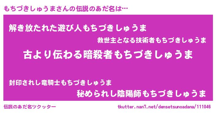 | 胡散臭い通販商品みたいなあだ名 | 『来世でも幸せになれる健康食品…その名も「もちづきしゅうま」』 |
