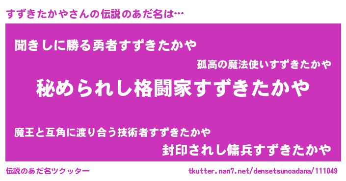 | 胡散臭い通販商品みたいなあだ名 | 『ガンによく効く高麗人参…その名も「すずきたかや」』 |