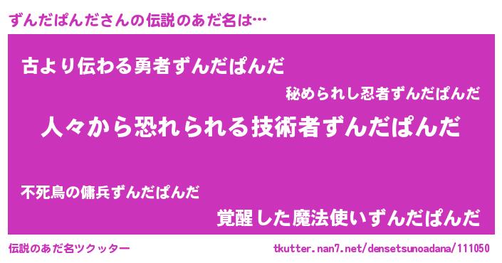 | ヒーロー風カッコイイあだ名 | 『仮面ズンダー』『愛の使者ずんだぱんだ』 |