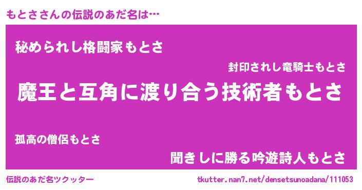 | 男性向けラノベタイトル風あだ名 | 『転生したらもとさだった件』 |