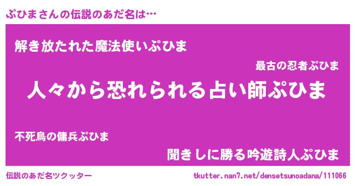 | ヒーロー風カッコイイあだ名 | 『友情の使者ぷひま』『仮面プヒダー』 |