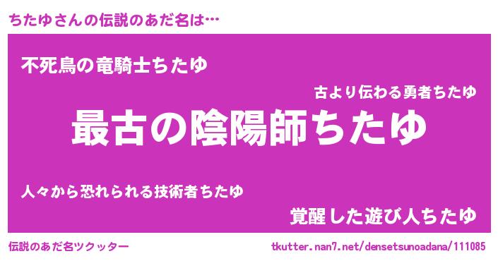| 女子向けラノベタイトル風あだ名 | 『闇のちたゆ』『ちたゆの雑貨屋さん』 |