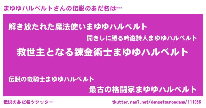 | 意味不明あだ名 | 『自称まゆゆハルベルト』 |