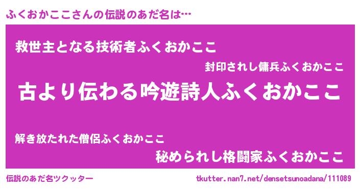 | 意味不明あだ名 | 『永久保存ふくおかここ』 |