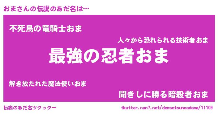 | 男性向けラノベタイトル風あだ名 | 『うちの娘の為ならば、俺はもしかしたらおまも倒せるかもしれない。』 |