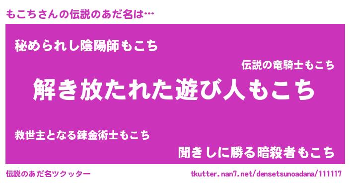 | 男性向けラノベタイトル風あだ名 | 『もこちの嫁は女の子じゃないと思った?』 |