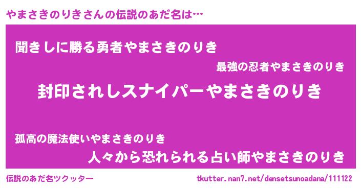 | ヘコむあだ名 | 『やまもー』『やまさきのりき(遠い目)』 |