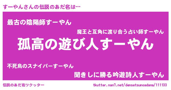 | 胡散臭い通販商品みたいなあだ名 | 『信頼と実績のペンダント…その名も「すーやん」』 |