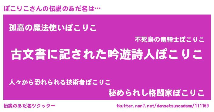 | ヒーロー風カッコイイあだ名 | 『ネオポコリコ』『黄金騎士ポコ』 |