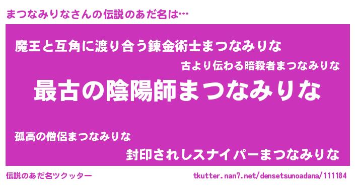 | 意味不明あだ名 | 『まつなみりなフォーエバー』 |