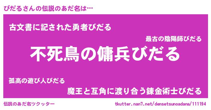 | 女子向けラノベタイトル風あだ名 | 『びだる姫と円卓の騎士』 |