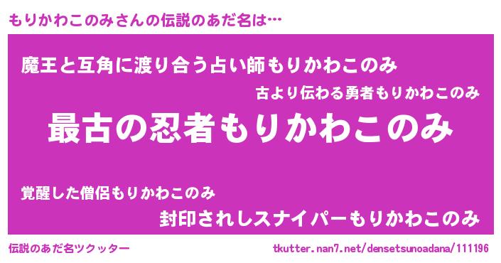 | 意味不明あだ名 | 『住所不定無職もりかわこのみ(14歳)』 |