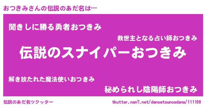 | 意味不明あだ名 | 『ペロリンおつきみ』『永久保存おつきみ』 |