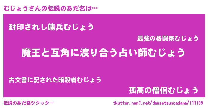 | 女子向けラノベタイトル風あだ名 | 『むじょう恋絵巻』『闇のむじょう』 |
