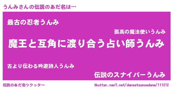 | ヒーロー風カッコイイあだ名 | 『慈愛の使者うんみ』『仮面ウンダー』 |