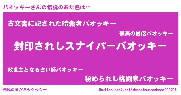 | ヒーロー風カッコイイあだ名 | 『スーパーバオッキー』『ネオバオッキー』 |