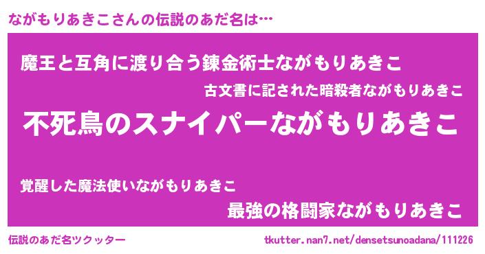 | ヒーロー風カッコイイあだ名 | 『スーパーナガモリアキコ』 |