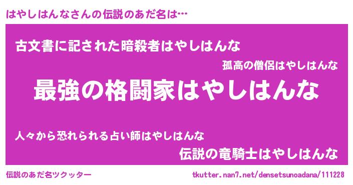 | ファンタジー風あだ名 | 『エターナルハヤシハンナー』 |
