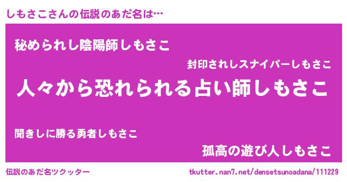 | ヒーロー風カッコイイあだ名 | 『正義の使者しもさこ』『暗黒騎士シモ』 |