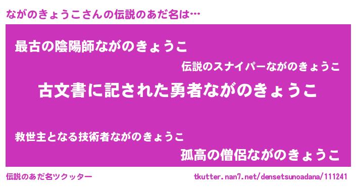 | 意味不明あだ名 | 『永久保存ながのきょうこ』 |