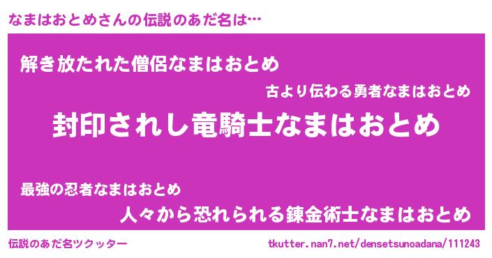 | 意味不明あだ名 | 『自称なまはおとめ』 |