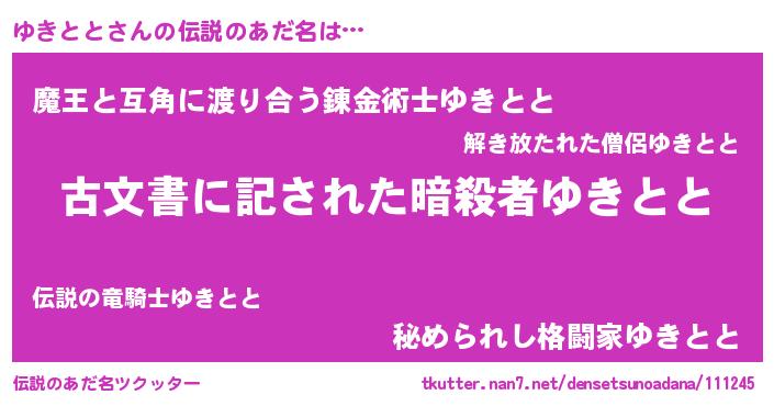| 意味不明あだ名 | 『永久保存ゆきとと』『ニラ科ゆきとと属』 |