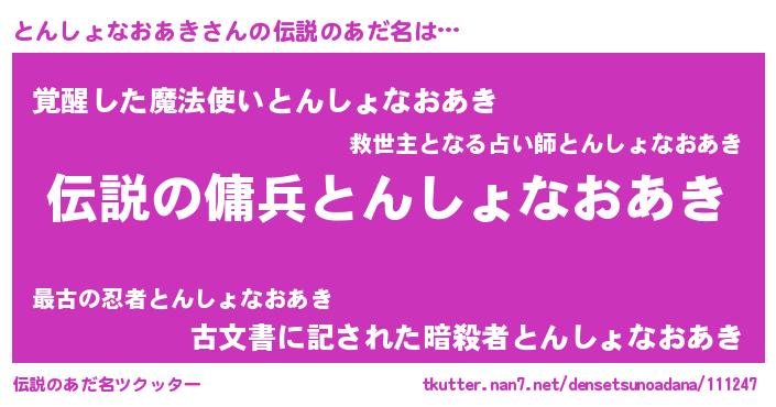 | 意味不明あだ名 | 『住所不定無職とんしょなおあき(40歳)』 |