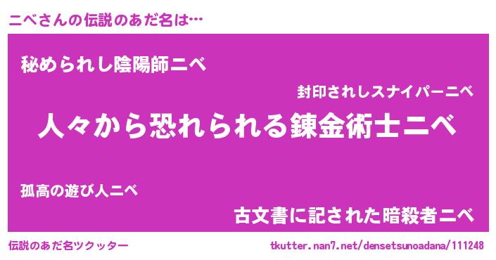 | ヒーロー風カッコイイあだ名 | 『正義の使者ニベ』『ウルトラニベマン』 |
