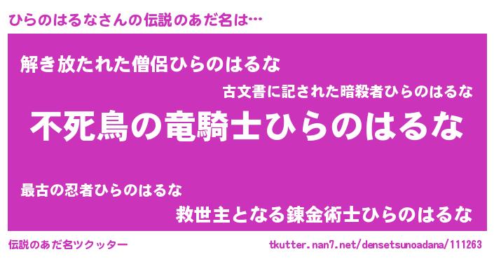 | 意味不明あだ名 | 『自称ひらのはるな』 |