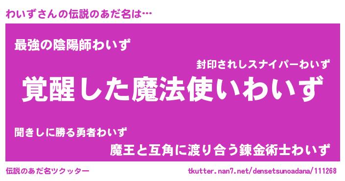 | ヒーロー風カッコイイあだ名 | 『幻影騎士ワイ』『ウルトラわいずマン』 |