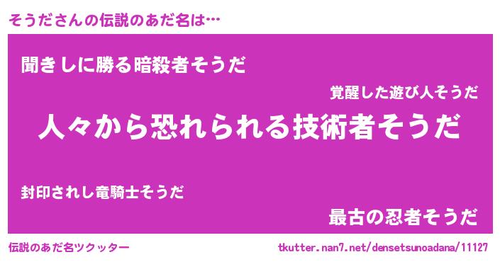 | ヒーロー風カッコイイあだ名 | 『正義の使者そうだ』『ネオソウダ』 |