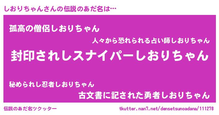 | 意味不明あだ名 | 『ペロリンしおりちゃん』 |