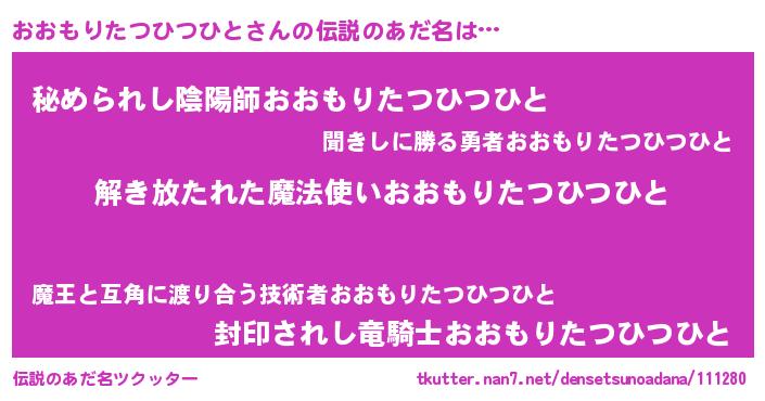 | 胡散臭い通販商品みたいなあだ名 | 『伝統あるサプリメント…その名も「おおもりたつひつひと」』 |