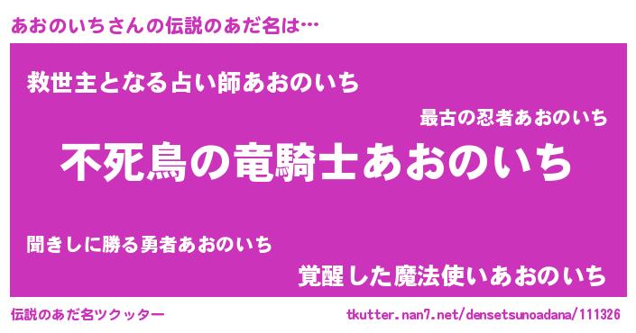 | ヒーロー風カッコイイあだ名 | 『スーパーアオノイチ』『天弓騎士アオ』 |
