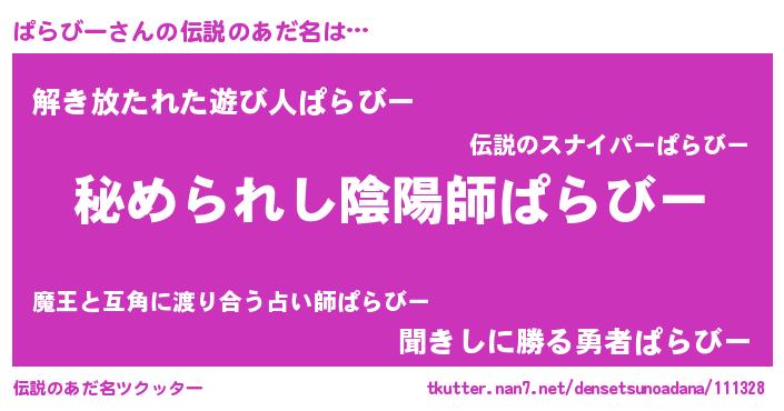 | 男性向けラノベタイトル風あだ名 | 『魔法科高校のぱらびー』 |